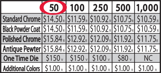 DIE CAST METAL W/RAISED COPY - 100% AMERICAN MADE